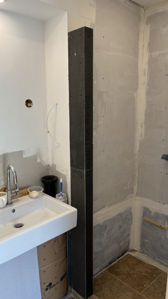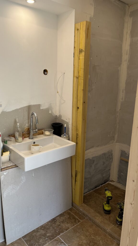 A trip to collect some wood for a solid solution and then fit it and cover it with nano board ready for tiling.