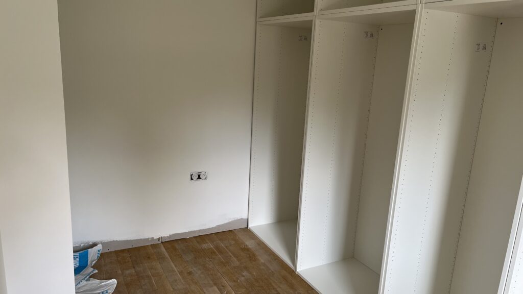 Lee has prioritised the painting of the dressing room so that I could get on with my next job which was to move upstairs and start assembling the dressing room cupboards to clear the kitchen of most of the IKEA pile.