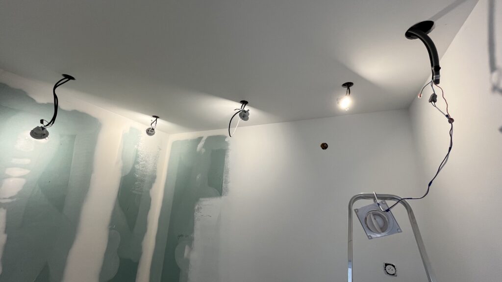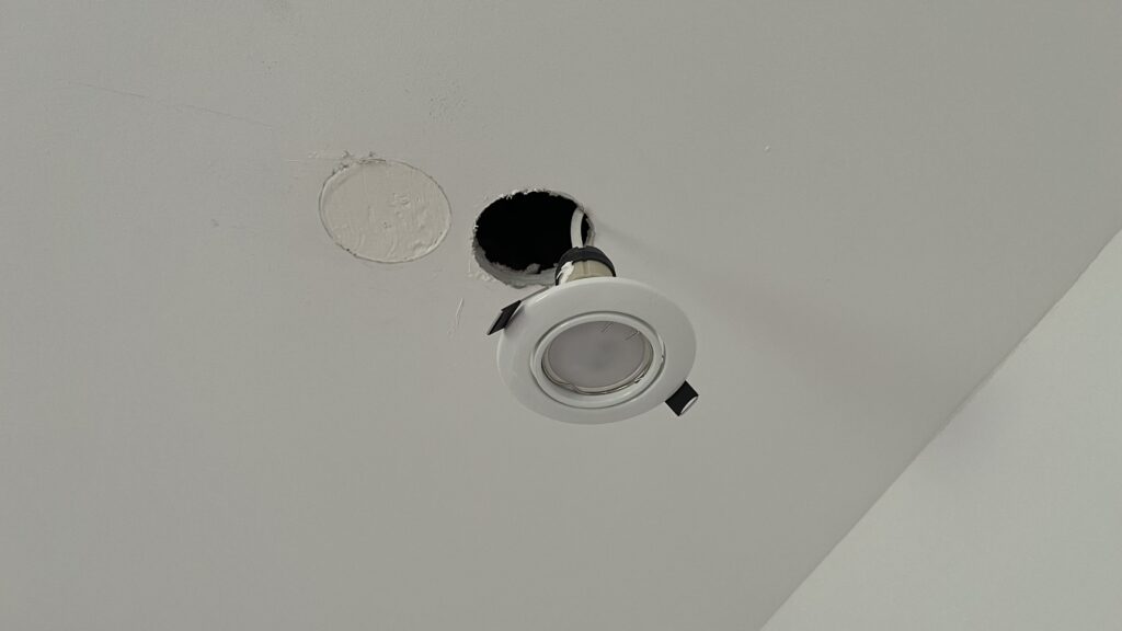 Guest en-suite lights and ventilation going in and ceiling hole from moving lights repaired.