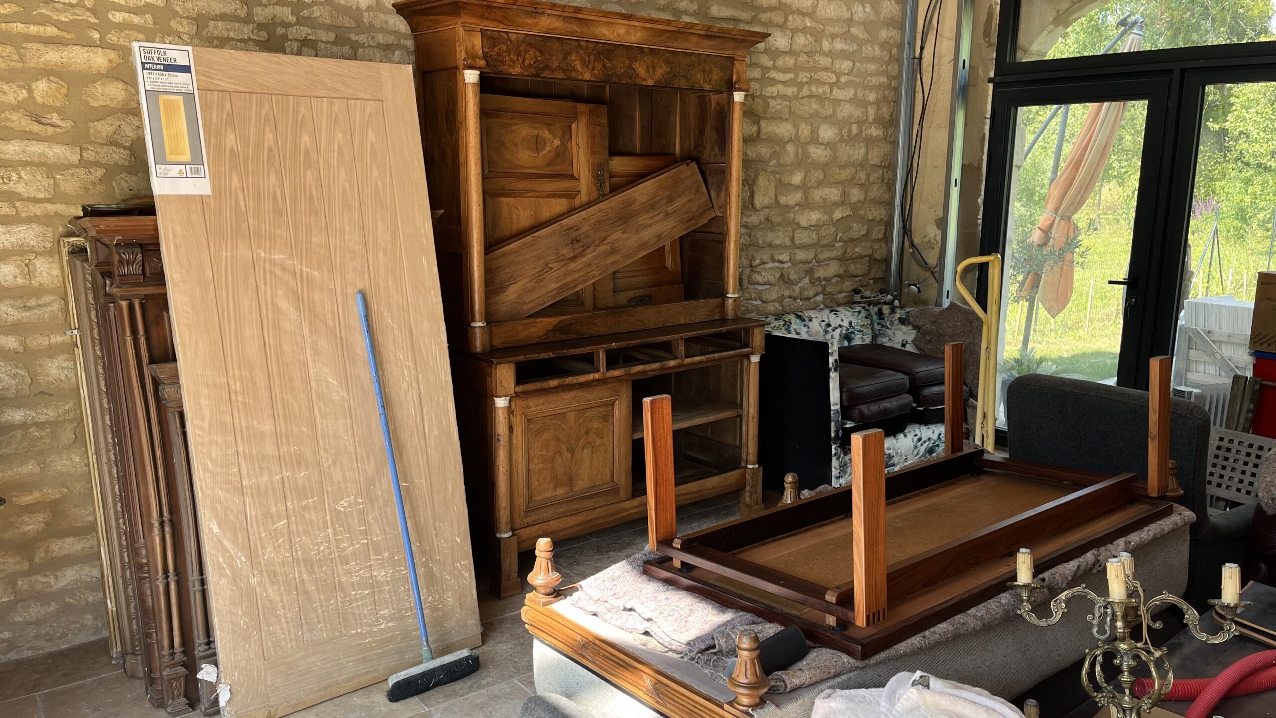 Furniture begins to pile up in the lounge as we start to empty the rental property in preparation for moving in.