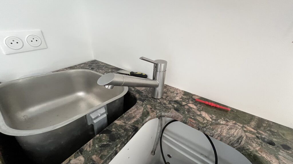 Utility room taps and sink. Hmm, that pair of sockets will have to go. We had to change the position of the utility sinks due to the orientation of the marble so the sockets that were far enough away were now on top of the sinks.