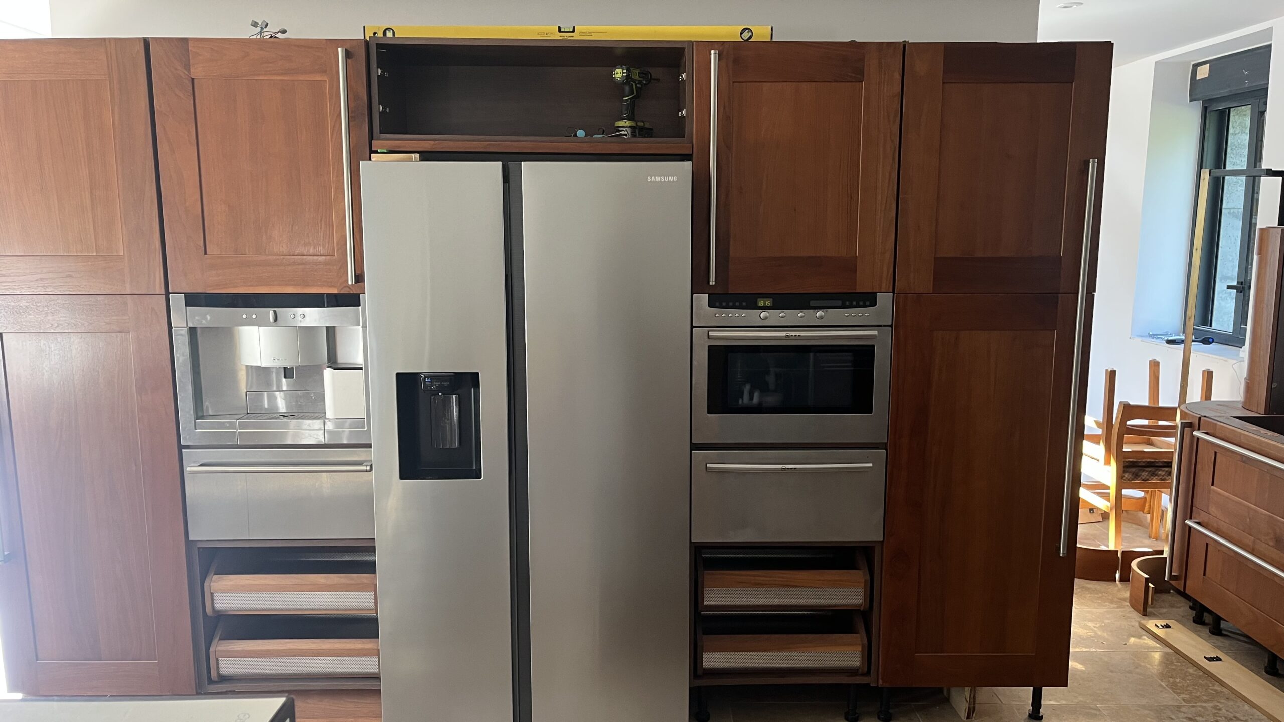 August 24 24 August 202527 April 2026 gjj On to the kitchen. Units in, no AGA or work surfaces but a kettle and microwave with oven. Perfect. Ça